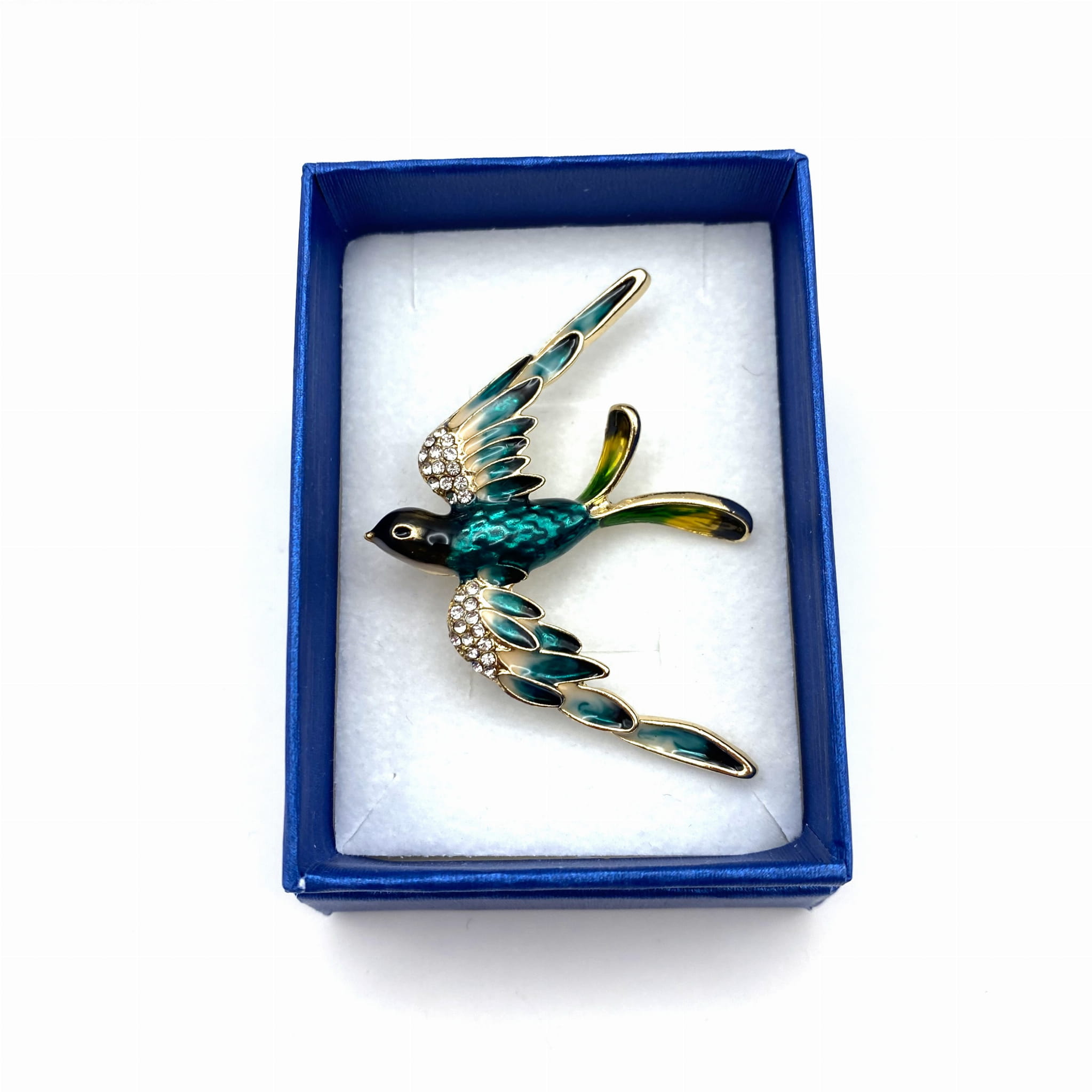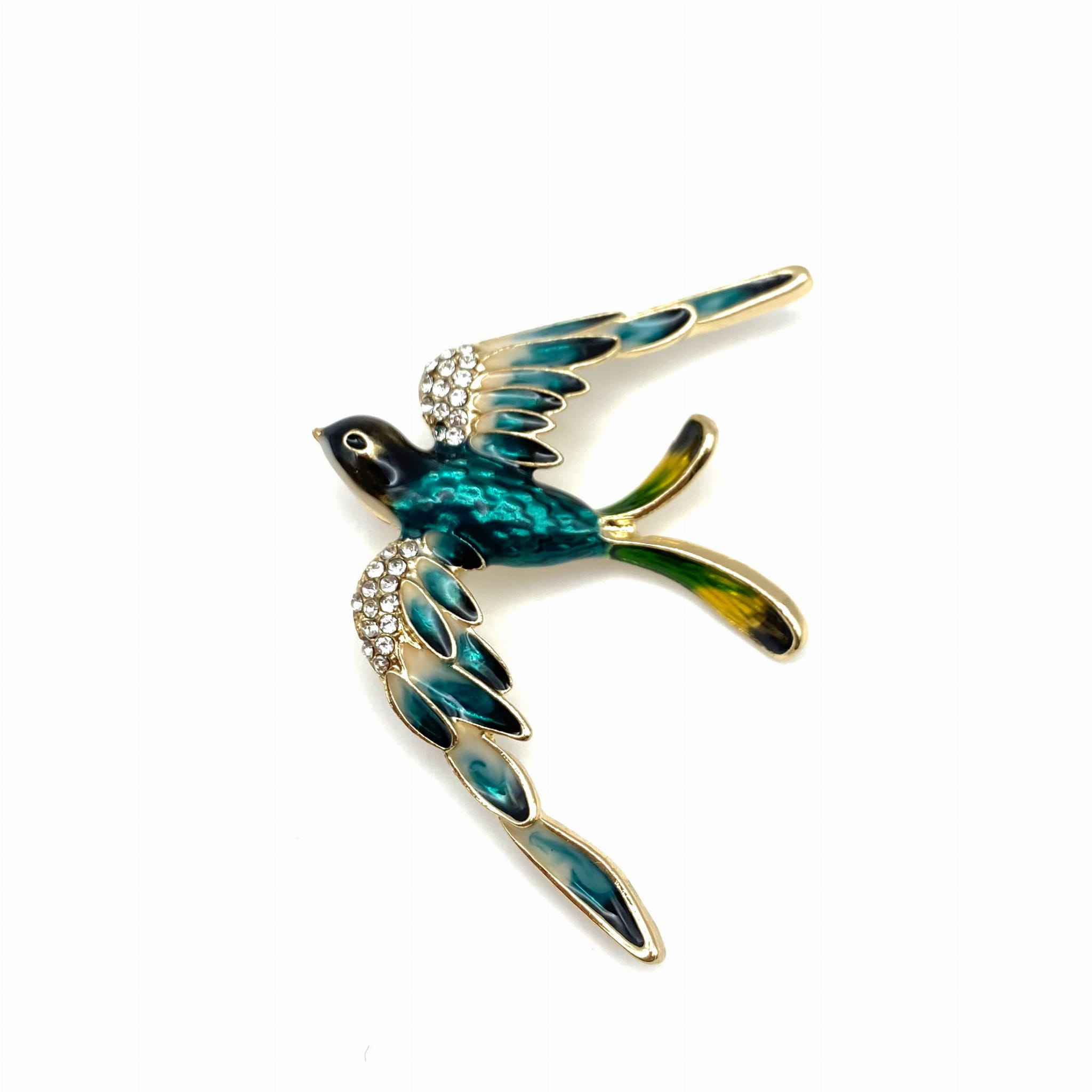 Broszka wykonana jest z metalu ozdobionego emalią i cyrkoniami